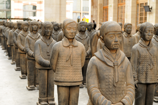 Il faut se frotter les yeux avant de regarder. L’armée de terre cuite de l’empereur Qin Shi Huangdi, site incontournable de toute visite en Chine, n’est plus composée de soldats mais de fillettes, moulées elles aussi dans l’argile : 116 jeunes filles exactement, qui symbolisent le déséquilibre de la natalité en Chine. Car au pays de l’enfant unique où les parents préfèrent les garçons qui s’occuperont d’eux durant leurs vieux jours, on ne compte que 100 filles pour 116 garçons.. 16 filles manquent à l’appel.