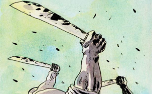 Pascale Bourgaux filmant les retrouvailles entre Osman, (un ancien lieutenant de Mamour Hasan) et sa famille après six ans de séparation. Sous le coup de l’émotion, elle oublie de nettoyer l’objectif… La séquence sera inutilisable mais renaîtra grâce à la BD.