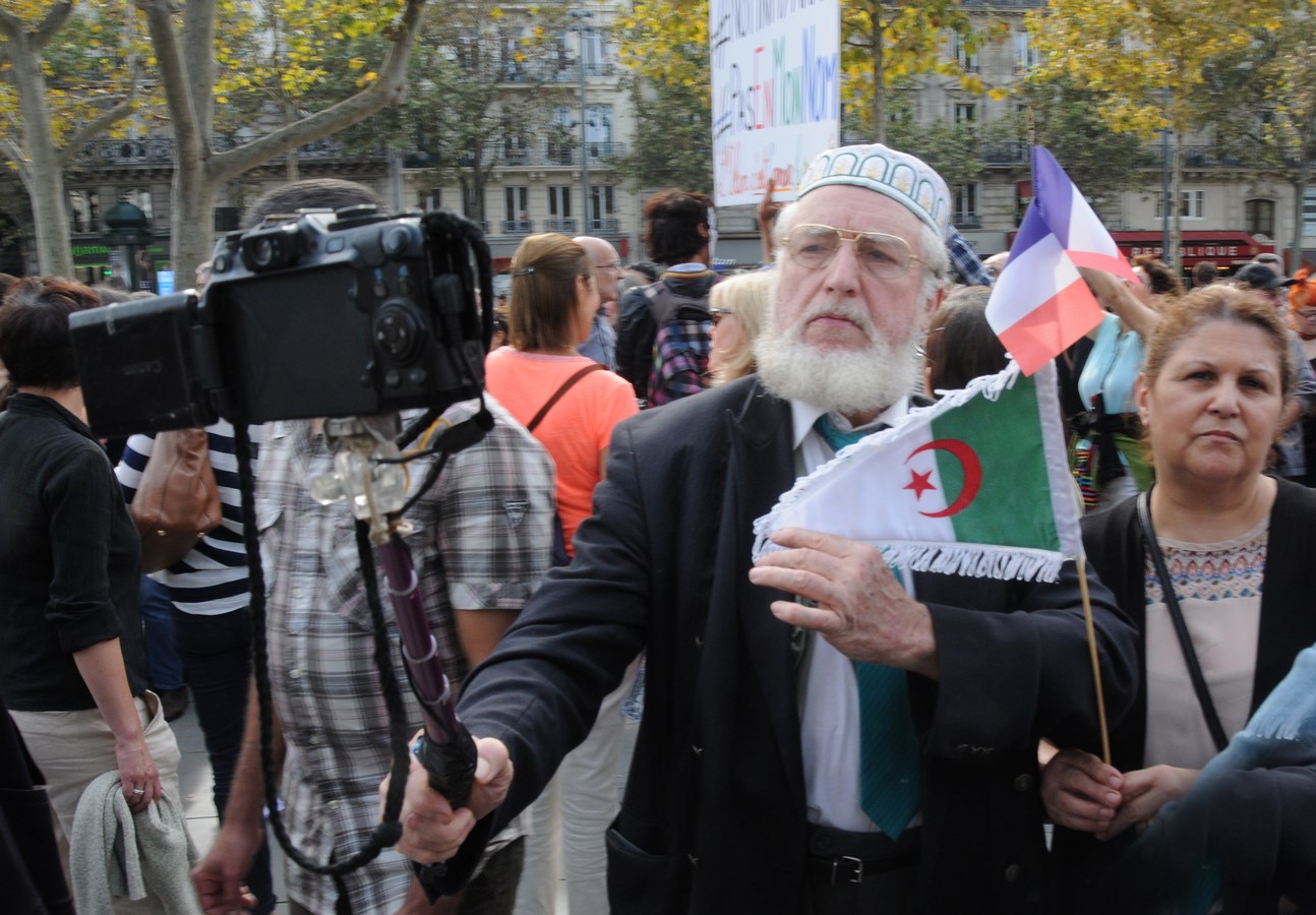 Mélange hétéroclite qui a plutôt bien cohabité. Car il y avait là les Kurdes du PKK brandissant le portrait d’Abdullah Ocalan (qui purge une peine de prison à vie en Turquie), la coordination « Chrétiens d’Orient en danger », des représentants de l’Union des Etudiants juifs de France, l’Association des Victimes du Terrorisme et des personnalités aussi diverses que l’incontournable Marek Halter qui côtoyait le turbulent imam de Drancy Hassen Chalghoumi, très contesté au sein de la communauté musulmane.