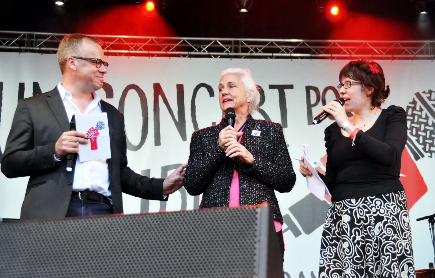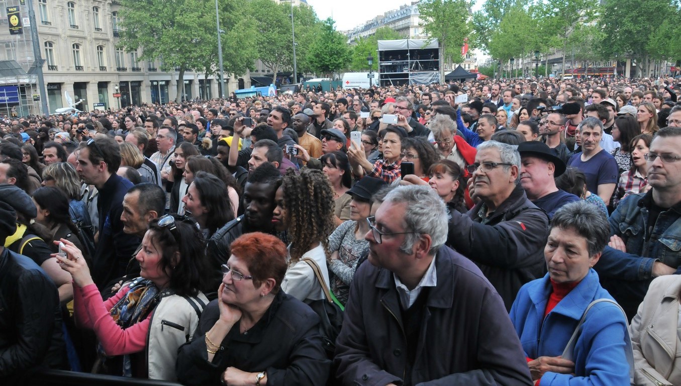 La République porte encore les traces des manifs pour Charlie : graffitis, cire de bougie, slogans comme celui-ci : « c’est l’encre qui doit couler par le sang »… Le décor était donc planté et la fête des trente ans de Reporters Sans Frontières n’a eu aucun mal à se fondre dans ce moule pour plaider sa cause : la défense de la liberté de la presse.