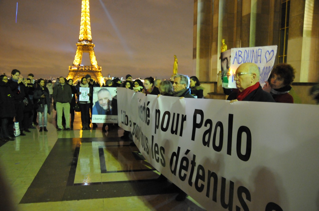 Manifestation de soutien au père Dall’Oglio à Paris, six mois après son enlèvement: janvier 2014 (Ph. Rochot)