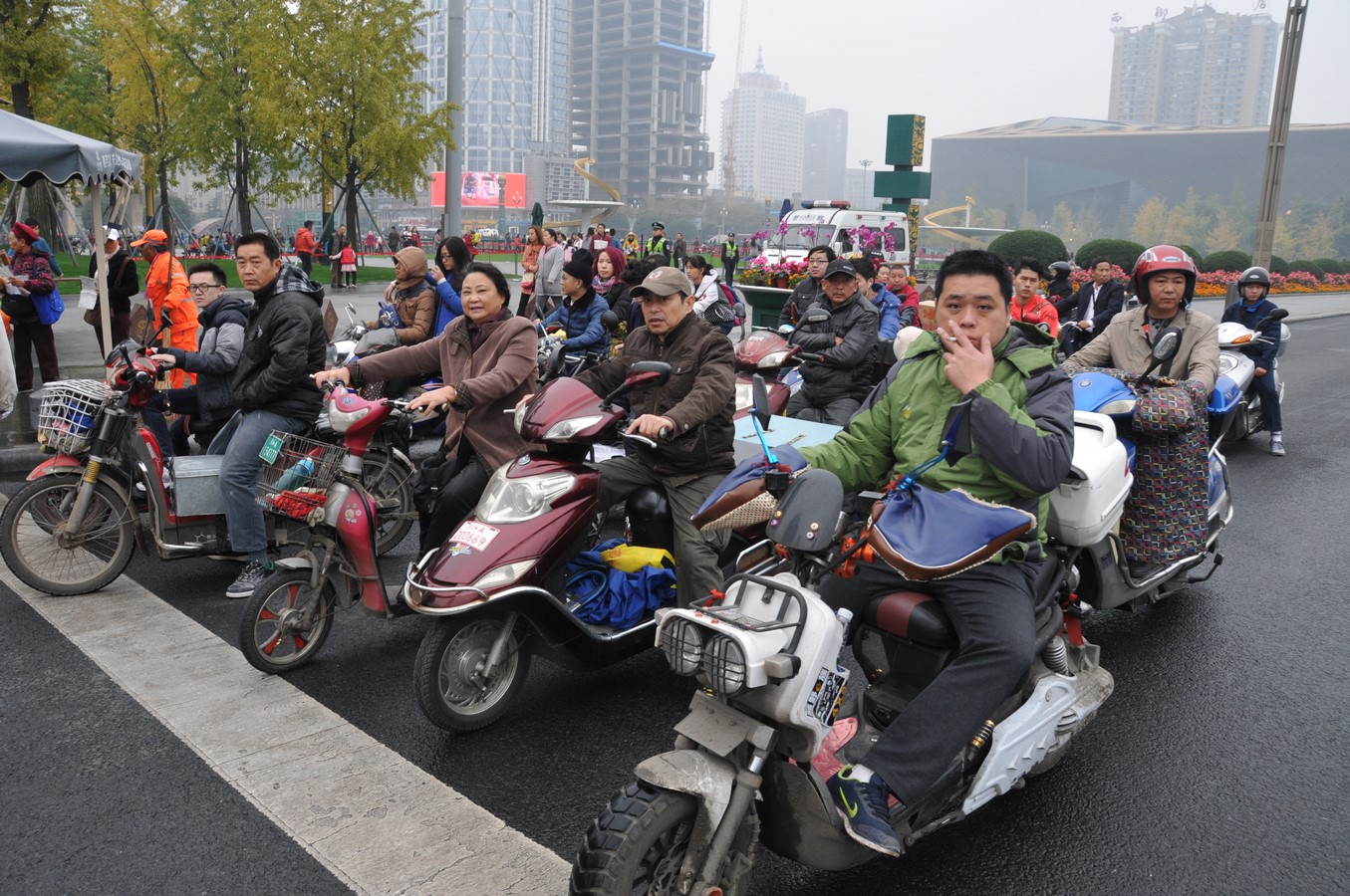 Le scooter électrique s’impose dans les centres villes. Chengdu, Sichuan. (c) Ph Rochot.