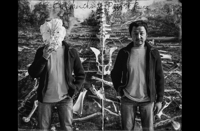 Dix ans après, tout autre artiste aurait cherché à renouveler l’image en retournant sur place. Gao Bo revient au contraire à sa photo d’origine en lui apportant des éléments personnels de vie, des écrits, des signes, des objets, partant du principe qu’aucune œuvre n’est définitive et qu’elle se transforme avec le temps, tout comme sa vision du monde. Il n’hésite pas ainsi à peindre sur ses tirages, à les crayonner, à répandre de la cire et même à les recouvrir de son propre sang en un geste volontairement iconoclaste. La représentation humaine n’est parfois plus visible mais elle est transcendée et c’est ainsi que l’artiste nous guide à travers sa marche du temps.