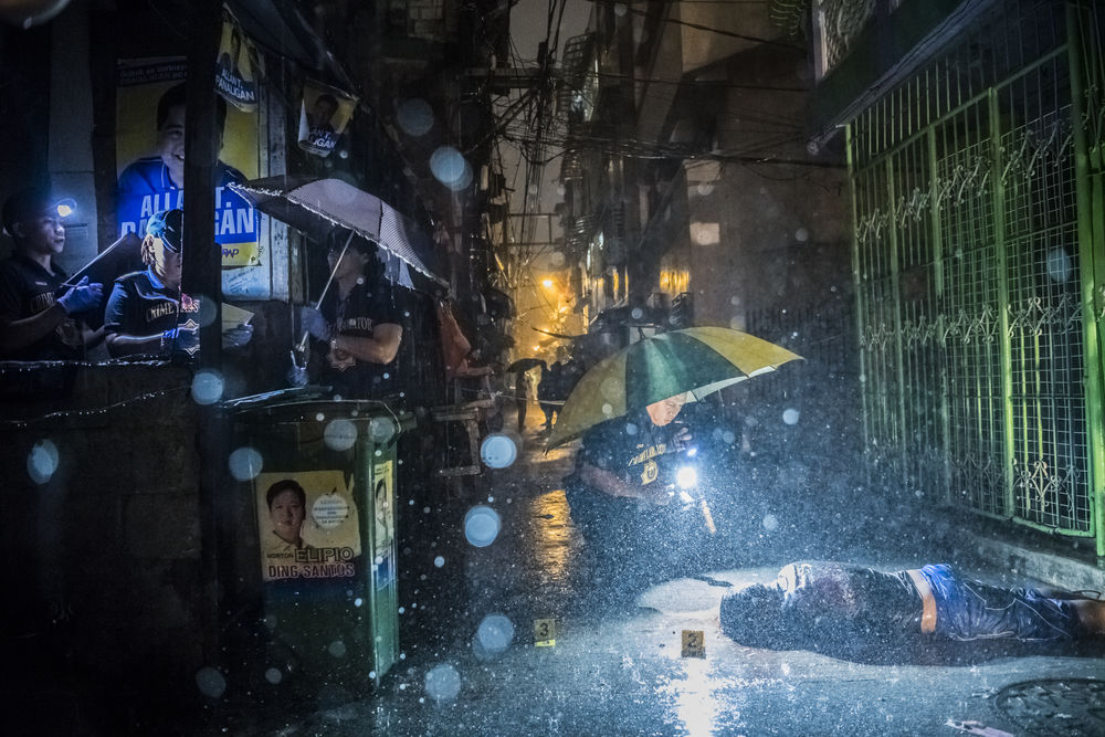 Le jury du World Press n’ pas oublié les événements des Philippines où le président Duterte encourage la population à régler ses comptes avec les trafiquants de drogue. Cas unique au monde où le pouvoir de l’Etat demande aux gens de faire justice eux-mêmes. Et cela donne des images de corps abandonnés dans les rues de Manille comme la photo très suggestive de Daniel Berehulak pour le New York Times qui emporte l’un des seize prix.