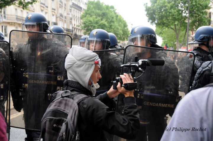 Paris, printemps 2016. « Les black blocs » contre la police, contre les médias. (Ph Rochot)