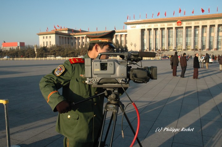 Chine, place Tiananmen, « journaliste » en uniforme. (Assemblée populaire: oct. 2009) (photo PR)