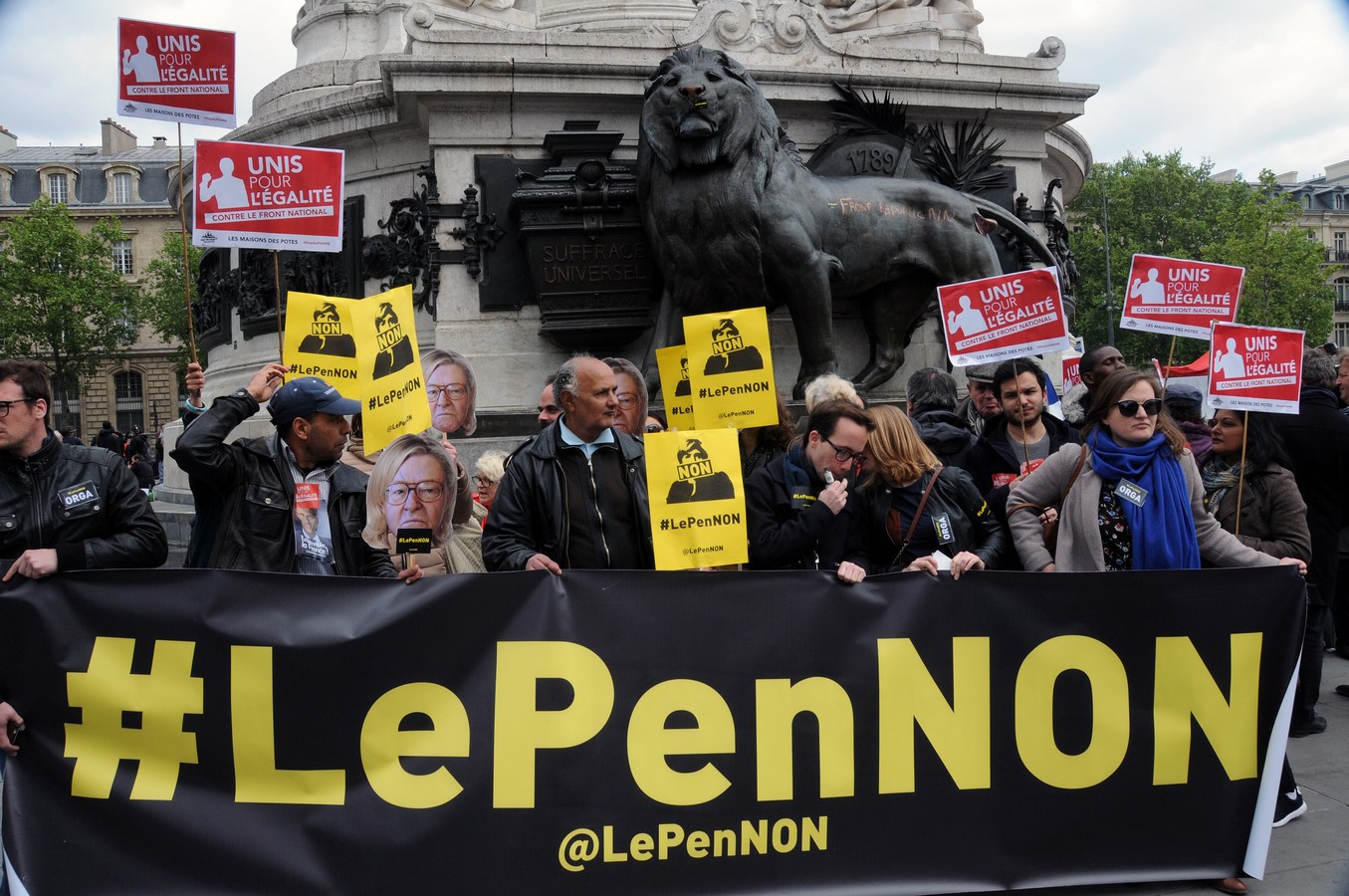 Les opposants à Le Pen quelque peu oubliés durant la manif à cause des violences entre autonomes et policiers.