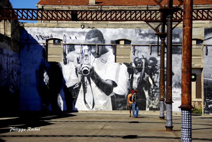 L’intérêt de l’exposition qui s’ouvre et qui occupe tous les espaces de cette noble institution est d’abord de retrouver JR à ses débuts, avec ses timides photos de murs des banlieues où apparaissent quelques graffitis. On peut même admirer l’appareil photo avec lequel il fit ses premières armes : un Sony trouvé dans le métro en l’an 2000 et qui jouera un rôle déterminant dans la suite de sa carrière fulgurante.