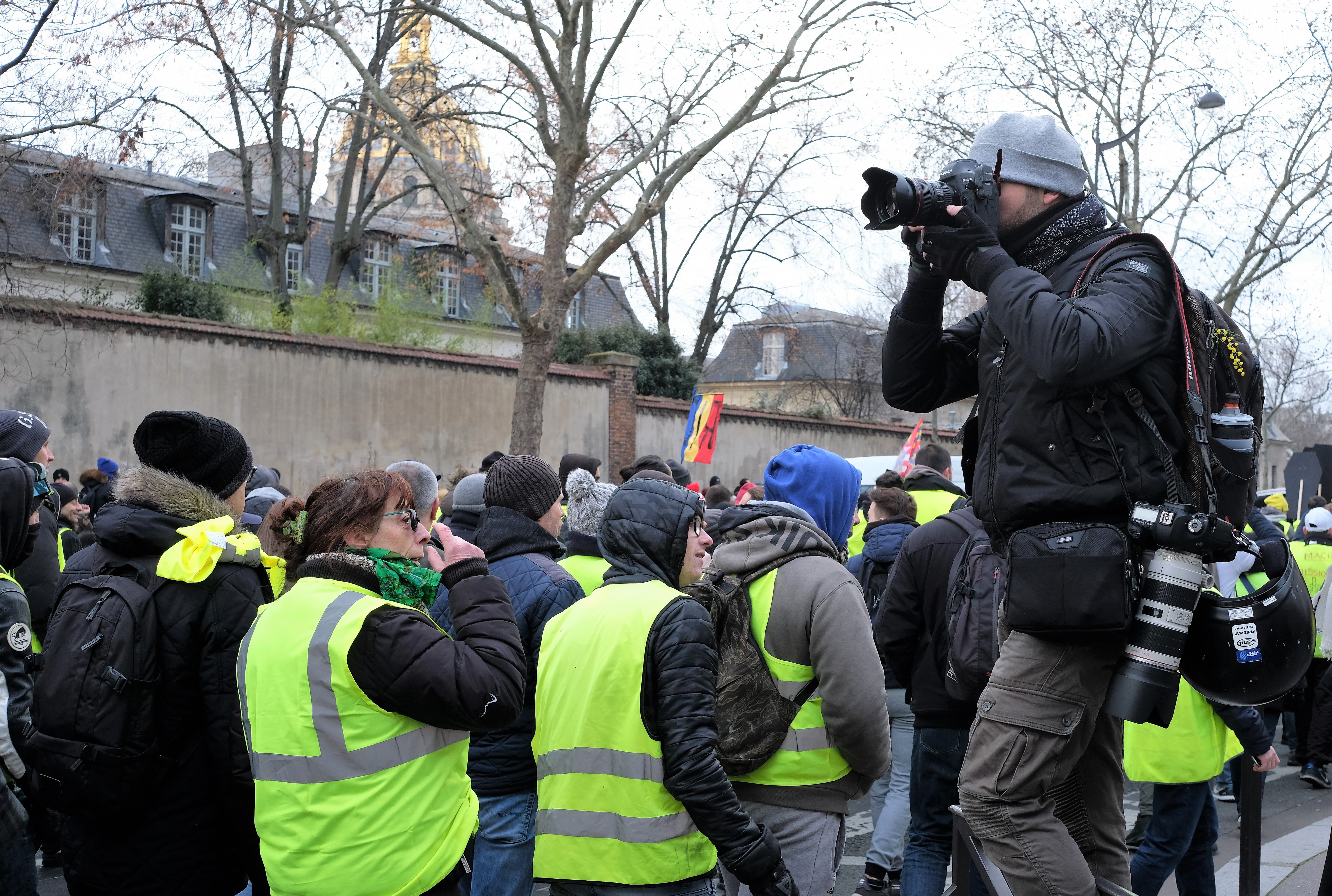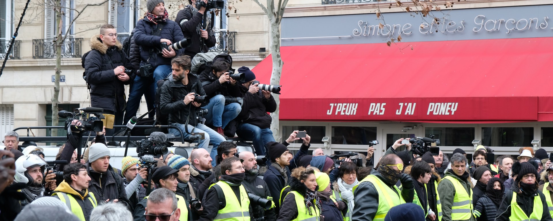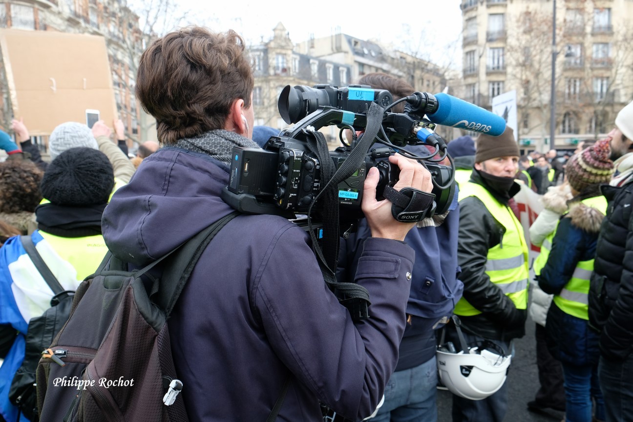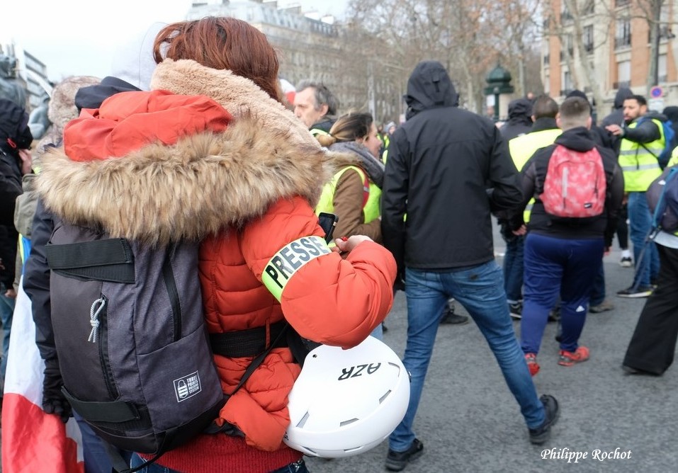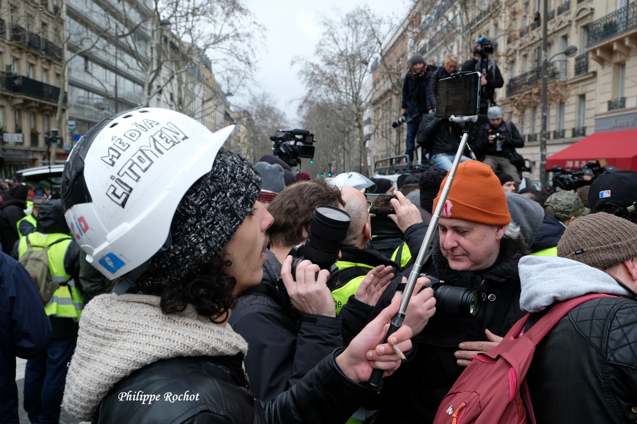 Des journalistes mettent parfois un brassard jaune frappé du mot « presse » en espérant que la couleur jaune aidera à faire passer le reste. Malgré la violence qui a marqué les fins de manifestations de l’acte XII à Paris, Bordeaux et Toulouse avec notamment une offensive croissante de « black blocs » on ne note pas d’incident majeur impliquant un média.