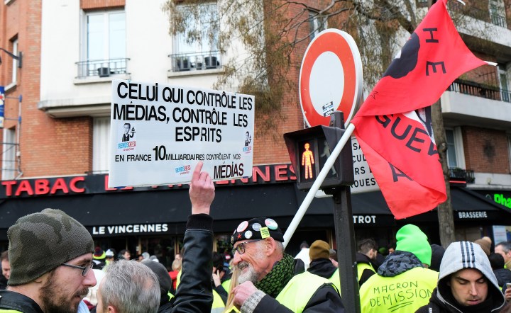 Les écriteaux aux slogans dévastateurs sont toujours présents dans les défilés : « celui qui contrôle les médias contrôle les esprits » : « médias = propagande d’état ». On peut pourtant observer une nette diminution des agressions physiques et verbales vis-à-vis des journalistes. Les Gilets jaunes ont pris conscience qu’ils avaient besoin de témoins pour faire connaitre la nature de leur lutte. Du statut de bannis, les médias deviennent tolérés.