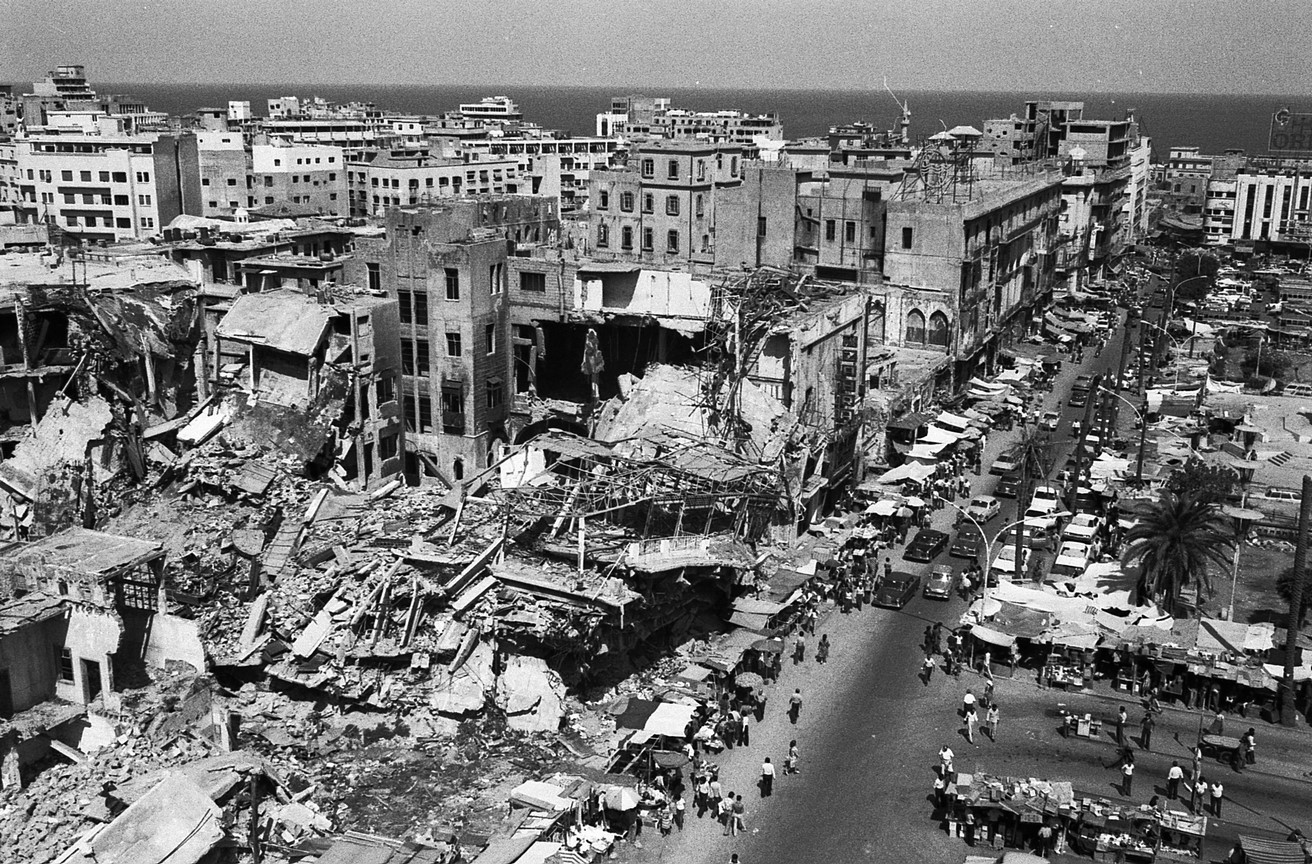 Beyrouth: attentat place des canons au début de la guerre civile. 1975. Ph. Rochot.