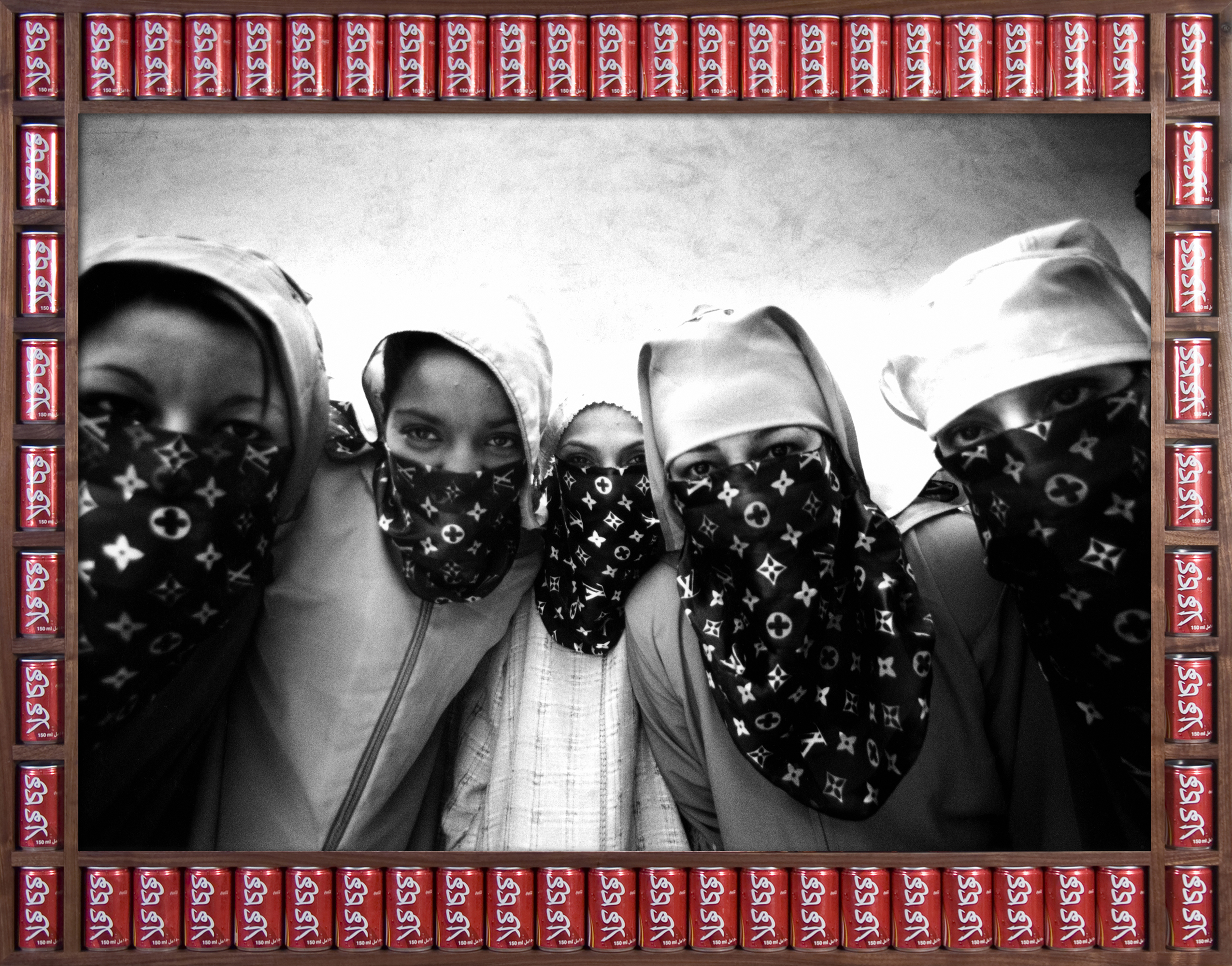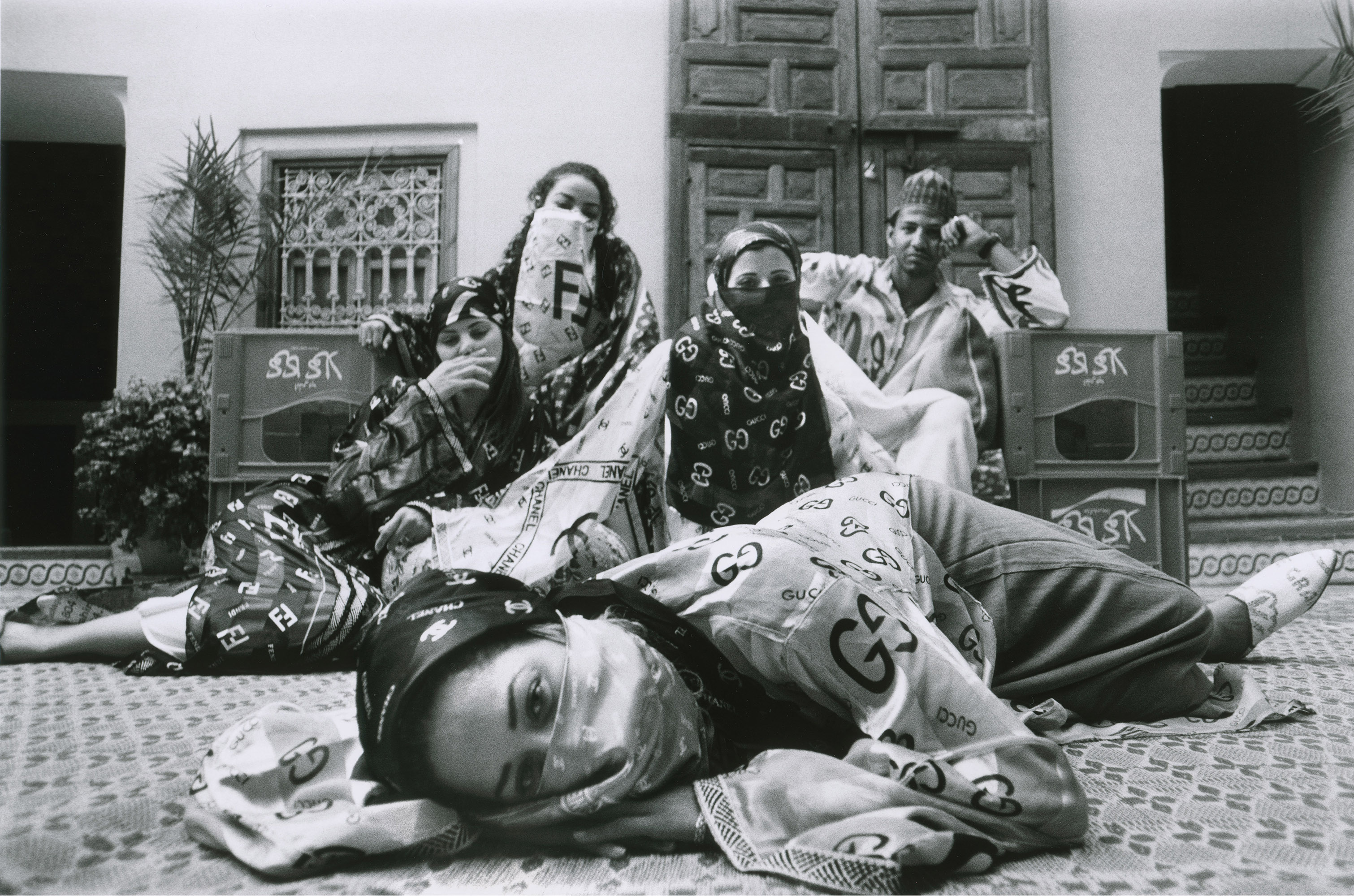 Détourner les clichés : Hassan Hajjaj sait faire… Il part de la femme voilée pour nous montrer des créatures qui portent des foulards Hermès ou Gucci en guise de hijabs, ou parfois de vulgaires copies, des chaussettes de toutes les couleurs à la place des bas noirs sous les babouches, des lunettes de soleil en forme de cœur et qui circulent en mobylette.