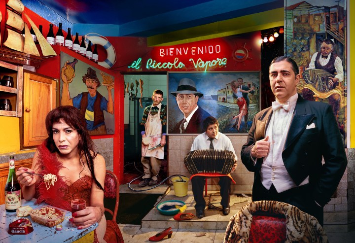 Marco Lopez est souvent présenté comme le Martin Parr d’Amérique latine. Il cherche le choc des cultures. Il nous fait sourire avec sa série « Pop Latino » et ses portraits originaux comme cette femme de type indien, l’air grave et digne, mais dont la coiffe est composée de fourchettes, cuillères et couteaux en guise d’épingles à cheveux, vulgaires instruments de cuisine qui bousculent la culture indienne.