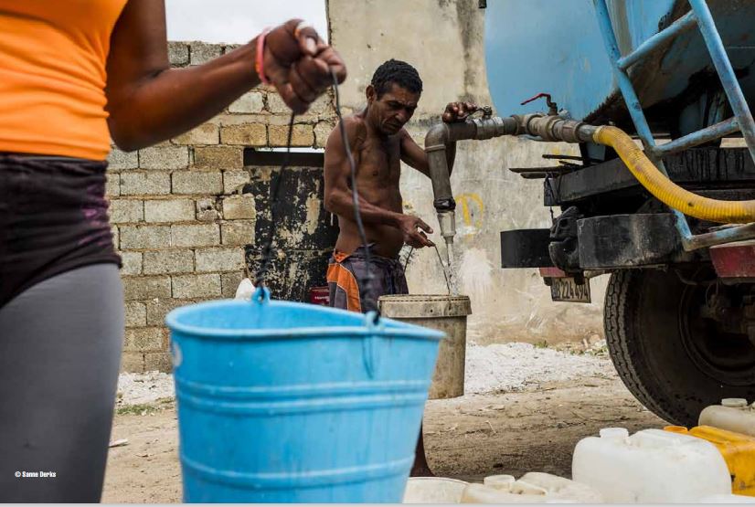 Sane Decks expose de son côté le problème de l’eau à Cuba avec son « Manifesto del agua ». Avec la croissance démographique et les effets du changement climatique, les eaux de pluie et les eaux souterraines de l’île ne suffisent plus à répondre aux besoins en eau douce de la population. C’est une armée de travailleurs qui chaque jour est chargée d’approvisionner la population en eau potable par des norias de camions citernes.