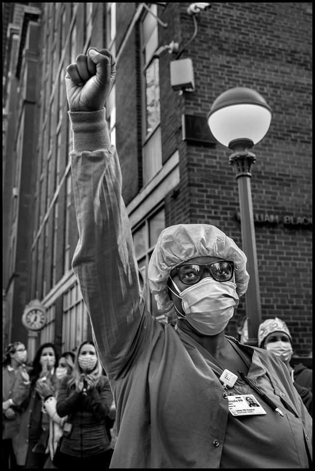 Les témoignages visuels qu’il nous rapporte sont d’une grande profondeur et d’une grande sensibilité. Il explique ainsi sa démarche: « Le premier jour j’ai fait ce qui m’est le plus naturel. Je suis sorti marcher avec mon appareil photo. Ce que j’ai vu m’a sidéré et bouleversé. Je me suis rendu compte que pour la première fois, j’allais être témoin d’une guerre menée contre un ennemi invisible dans mon propre pays, que cela allait avoir un impact sur chacun d’entre nous et que chacun avait sa propre histoire. Il est essentiel de témoigner de ce moment et des histoires de tous ces héros et victimes quels qu’ils soient, pour nous aider à nous rassembler aujourd’hui et en garder une trace. »