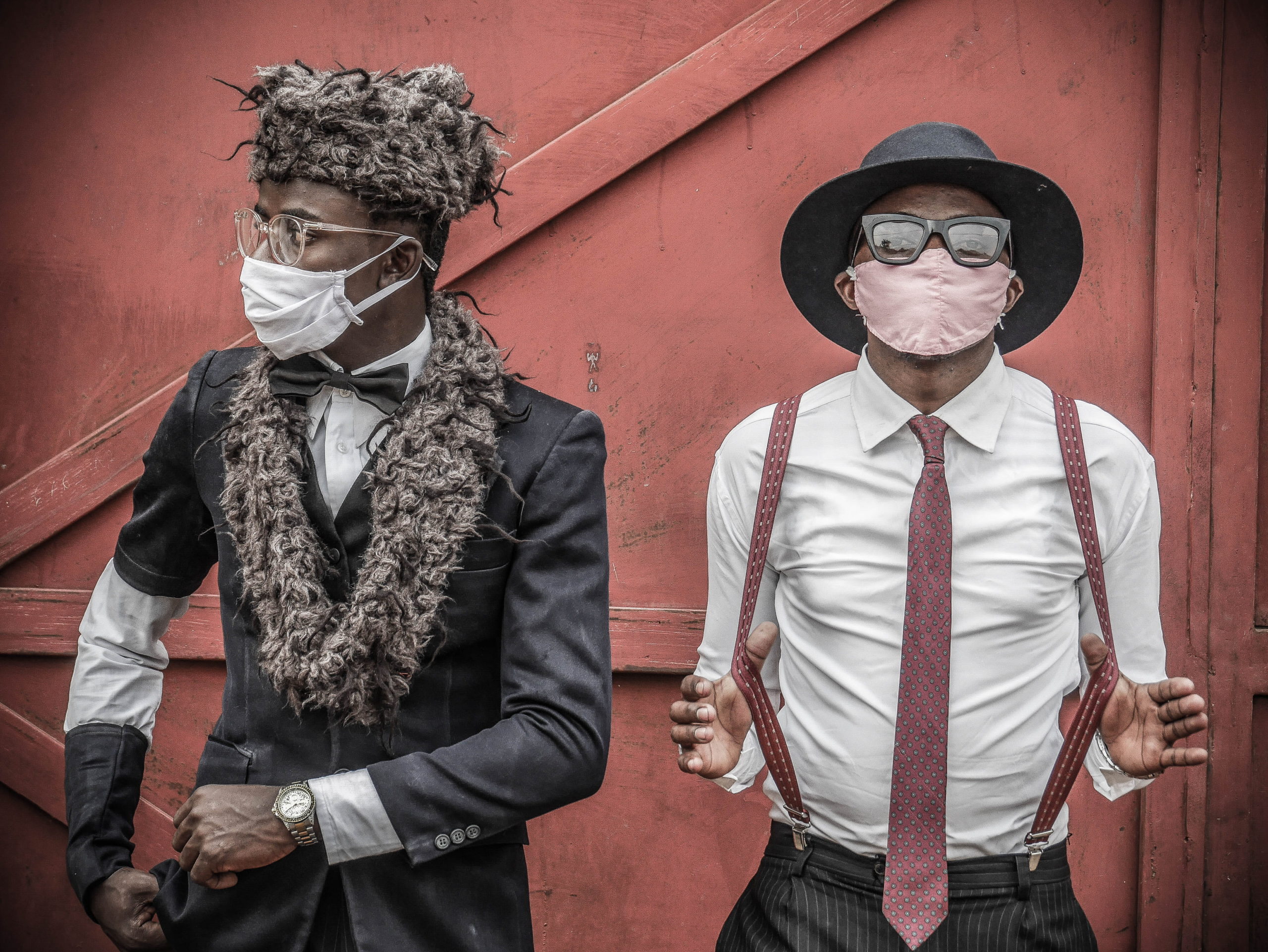 Les « Sapeurs », autrement dit les adeptes de la SAPE (Société des Ambianceurs et Personnes Elégantes.) Le mouvement est né durant la période coloniale lorsque les soldats congolais de retour d’Europe après la Seconde Guerre mondiale ont rapporté avec eux les dernières modes parisiennes. Il s’agit plutôt de caricaturer la mode occidentale. Photo de Raissa Karama Rwizibuka (pour fondation Carmignac)