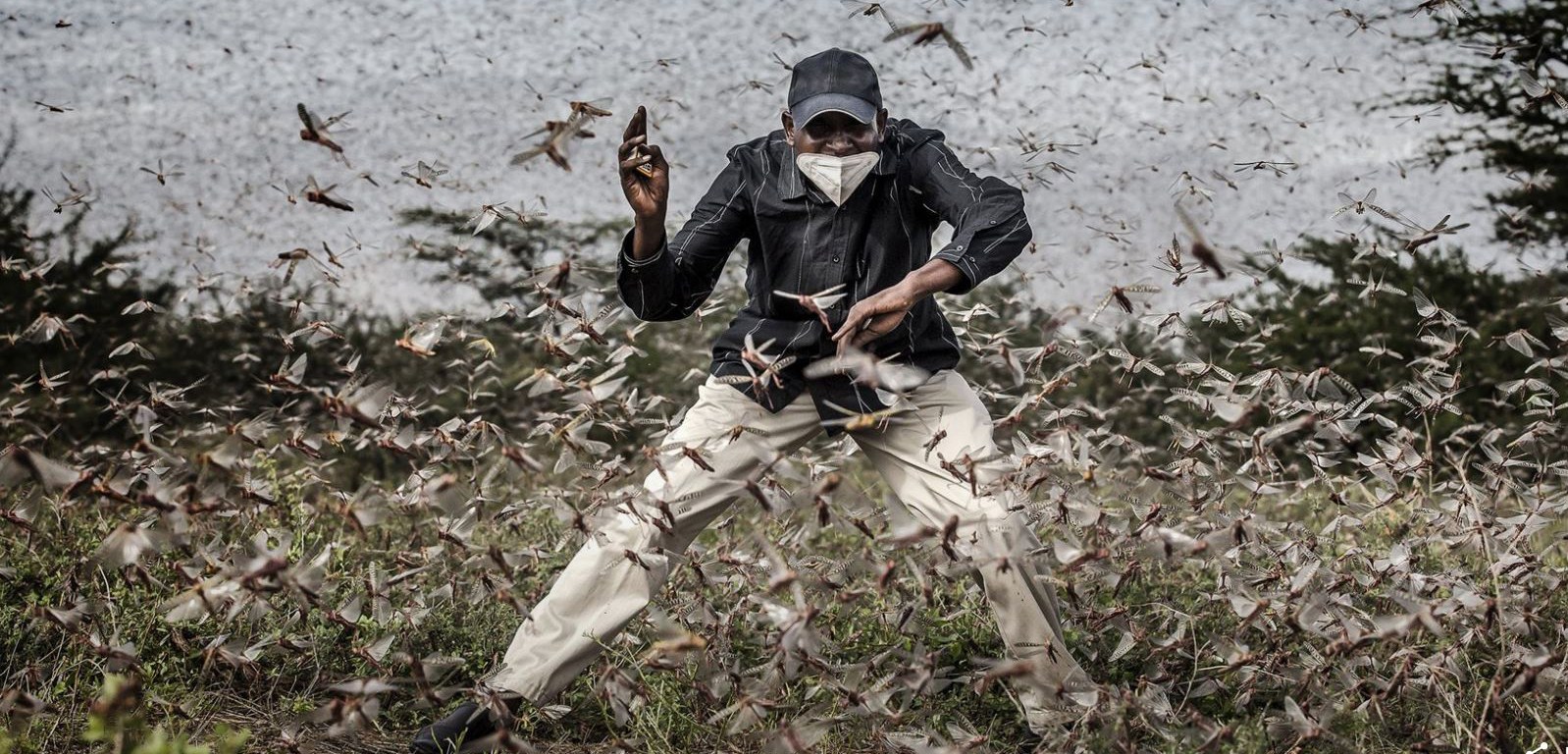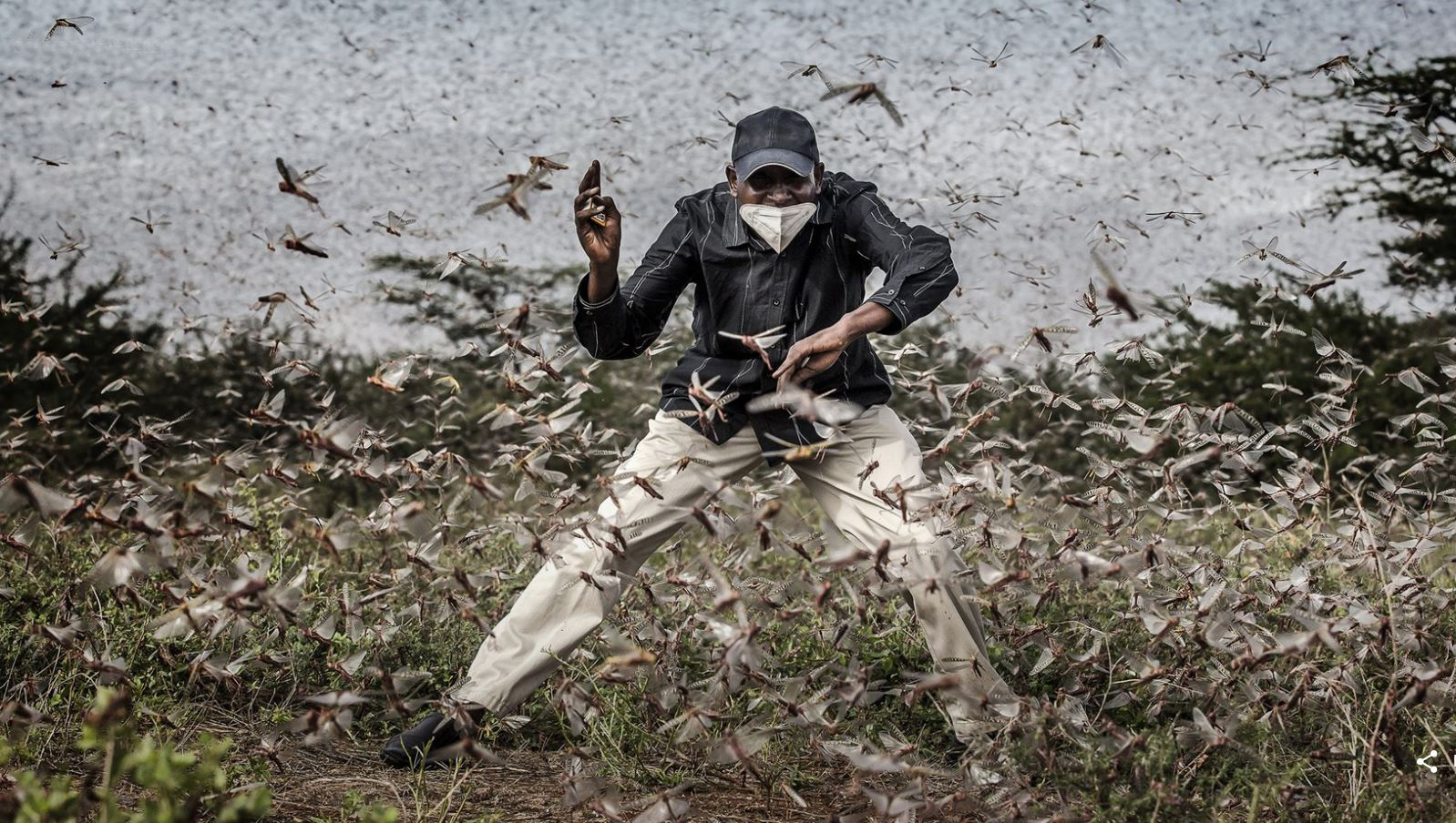 Je retiens par exemple cet étonnant cliché de Louis Tato, photographe à l’AFP basé à Nairobi, montrant un gardien kenyan dans le parc de Samburu en train d’affronter un essaim de criquets pèlerins qui dévorent les récoltes. L’homme est masqué car il doit aussi faire face au fléau de la pandémie de Covid19 tout en luttant contre ces insectes envahissants. Voilà près de 70 ans que le Kenya n’avait pas connu pareille offensive des criquets pèlerins. Chaque essaim peut regrouper plus de 50 millions d’insectes. L’image de Louis Tato rend compte fidèlement de cette calamité.