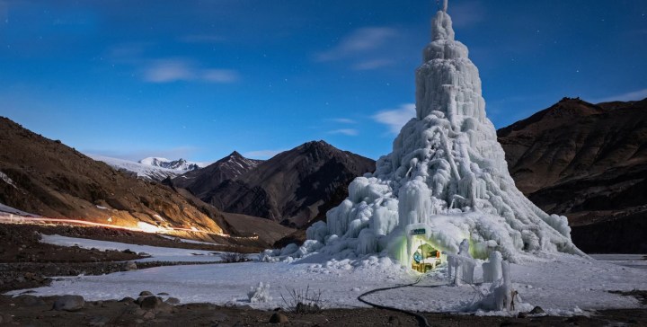 On savait que les Suisses recouvraient une partie de leurs glaciers avec de gigantesques bâches au printemps pour les empêcher de fondre mais on ignorait que les gens du Ladakh dans l’Himalaya, fabriquaient carrément des cônes de glace pour fournir de l’eau aux cultures. C’est le sujet traité par le photographe Cyril Jazbec qui nous présente ces glaçons géants qui stockent les eaux de fonte en hiver pour les libérer au printemps. Un ingénieur ladakhi, Sonam Wangchuk, a mis au point la technique de création de ces glaciers artificiels qui ressemblent à des stupas bouddhistes, une invention simple mais géniale qui pourrait bien faire école.