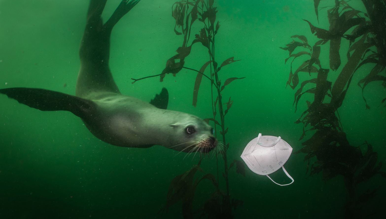 La pandémie de coronavirus touche aussi les animaux marins ; c’est la photo étonnante que présente Ralph Pace, photographe californien sensible à l’usage que nous faisons des masques et autres gants de protection une fois utilisés. Ainsi les lions de mer sur le site de plongée de Monterey en Californie, s’amusent avec ces masques jetés à l’eau et parfois les avalent, ingurgitant ainsi des particules de plastique et des matières nuisibles à leur santé. Poissons et mammifères marins font de même et ces produits microplastiques se retrouvent ensuite dans la chaine alimentaire. On estime qu’avec le covid19, les humains utilisent plus de 120 milliards de masques chaque mois dont une bonne partie se retrouve dans la mer après usage. Avec cette image, Ralph Pace a su trouver le lien entre environnement et épidémie.