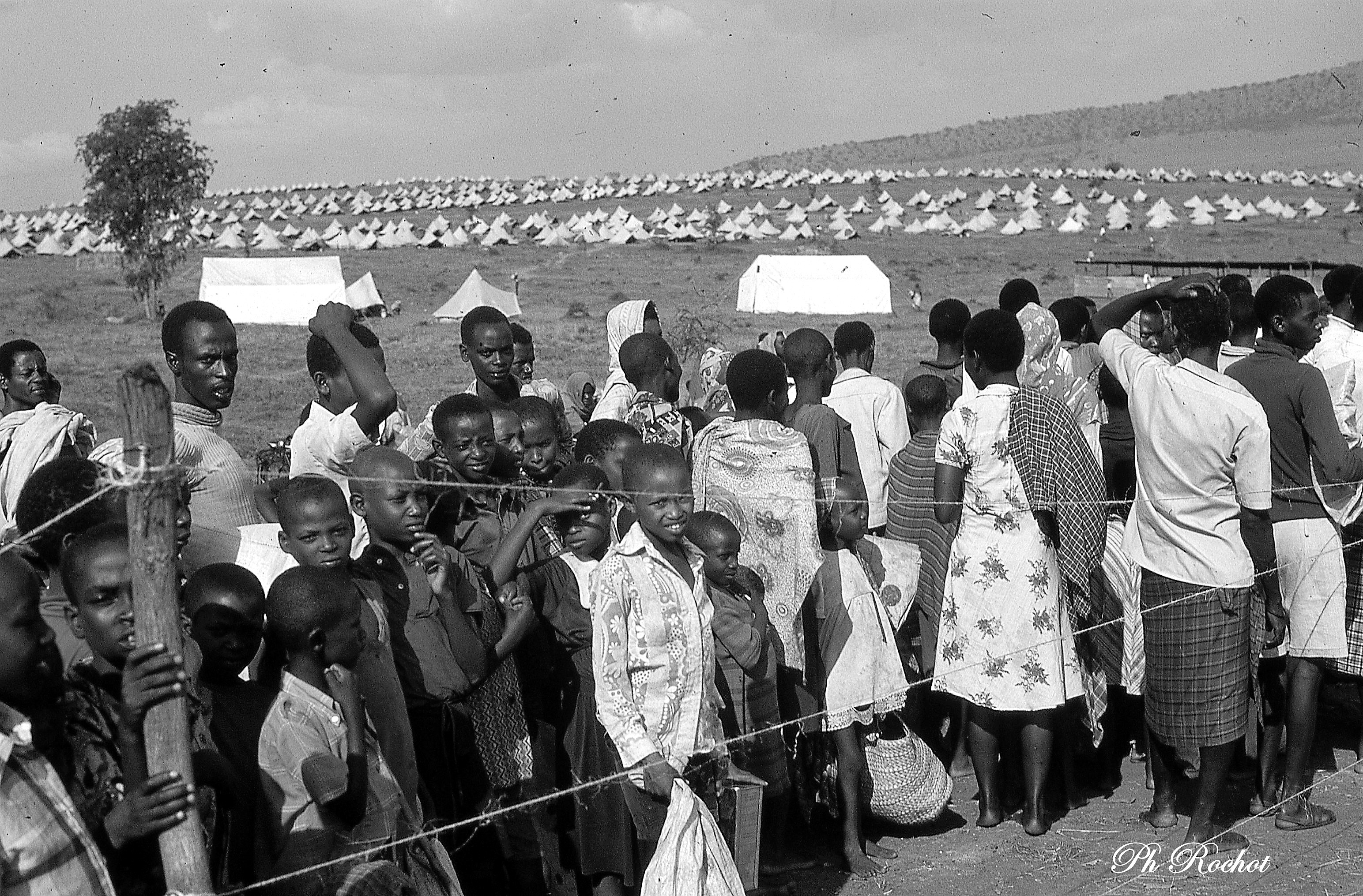 Rwanda: réfugiés ougandais. Le Rwanda accueillit aussi dans les années 1980 des réfugiés ougandais, suite à une guerre civile, alors que c’est d’Ouganda que le FPR préparait sa conquête du pays. 1983. (c) Ph Rochot.