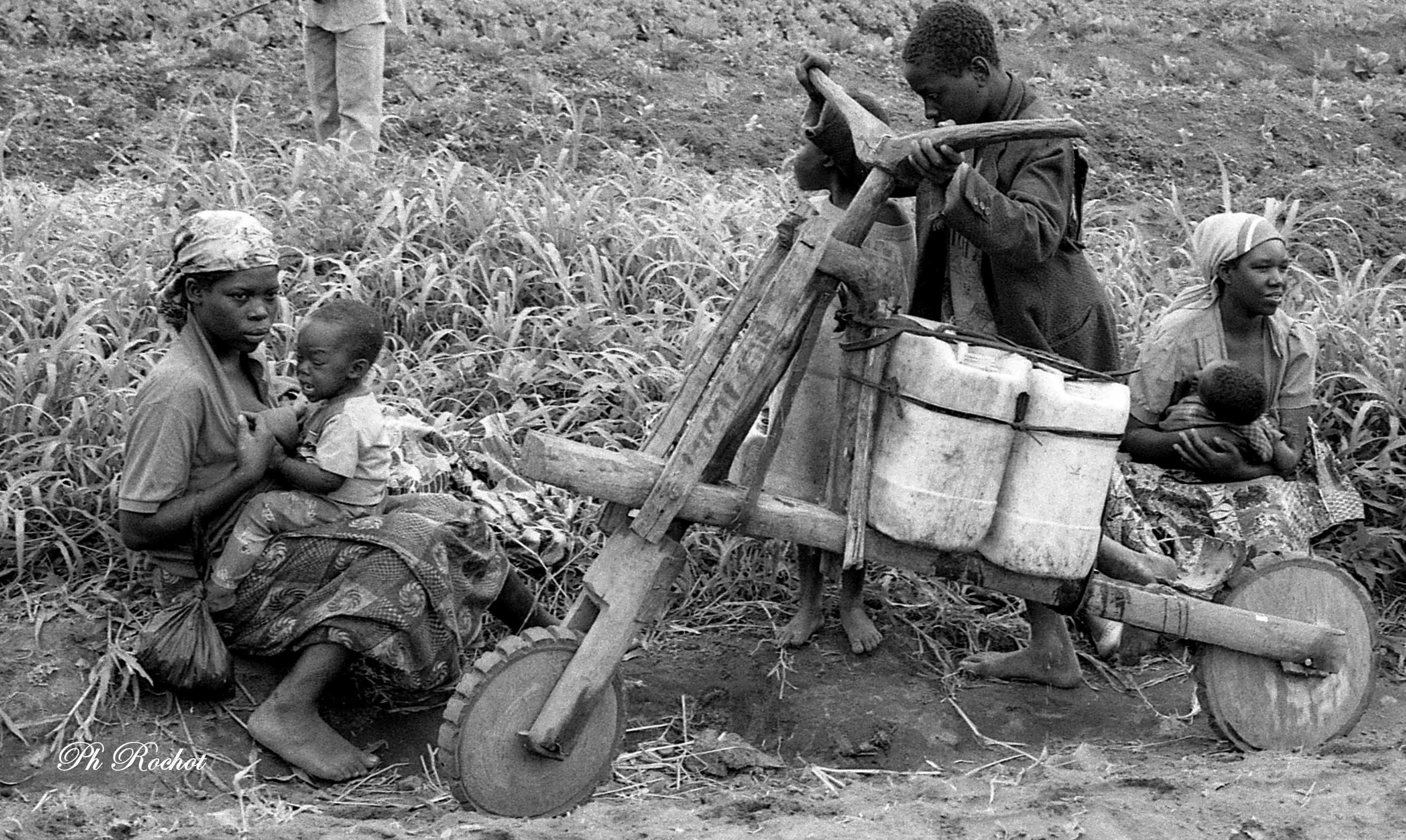 Rwanda: la traditionnelle trottinette appelée Chikudu et qui servit à approvisionner les camps de réfugiés. (c) Ph Rochot.