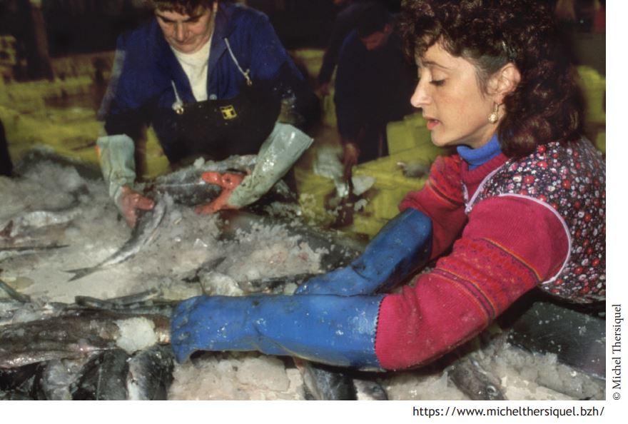 Michel Thersiquel est un photographe breton qui s’est fait remarquer par ses portraits dans les années 1970 au sein du Club des 30X40 où se retrouvaient les grands de la photographie française comme Doisneau, Ronis, Boubat. Son regard sur la Bretagne est donc avant tout humain. C’est dans cet esprit qu’il va réaliser en 1987 à Lorient, une série sur « Les femmes à la criée, mettant au grand jour des métiers peu connus du monde de la pêche. Aujourd’hui la plupart de ces métiers ont disparu ce qui donne à ses images une dimension supplémentaire.
