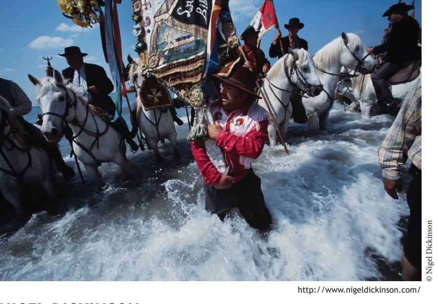 Voilà deux ans que le pèlerinage aux Saintes-Maries-de-la-mer est annulé : trop de monde, trop près, trop dense, risque sanitaire élevé. On aura donc plaisir à retrouver des photos de ce grand rassemblement des Roms et des Gitans avec la série de Nigel Dickinson. L’endroit est une mine d’images : portraits d’hommes et de femmes venus de toute l’Europe, aux visages burinés, travaillés par le vent et les grands espaces, foules qui chantent devant l’église, baptêmes célébrés sous la protection de la sainte Sara la Noire. Dans un seul lieu, une source d’images infinies s’offre au photographe et Nigel Dickinson a su en profiter.