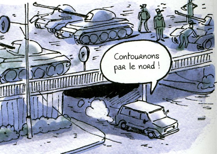 Couvrir Tiananmen: en 4×4 dans les rues de Pékin occupées par l’armée. (dessin Aude Massot)