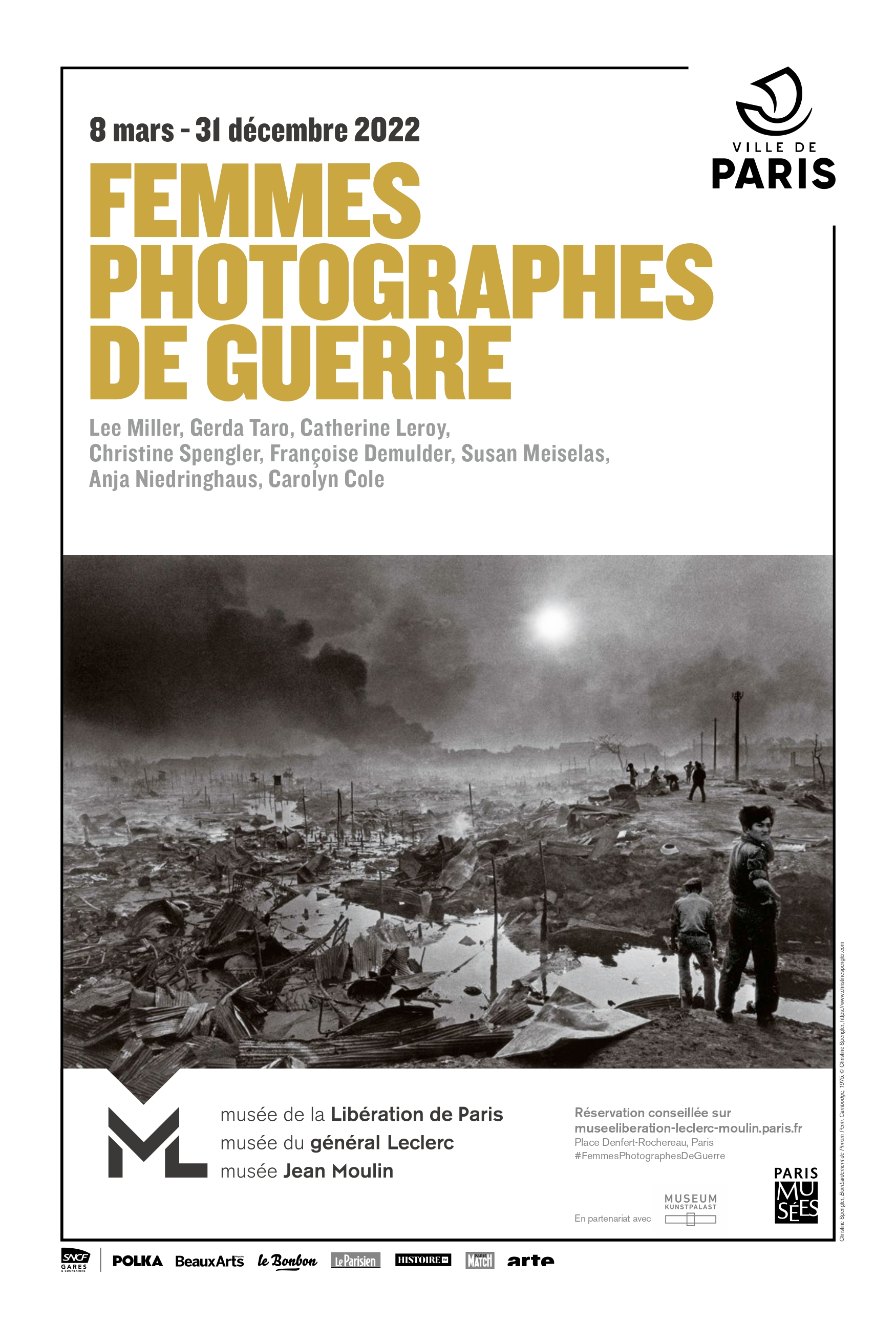 Christine Spengler est l’une des trois photographes encore en vie qui présente son travail de reporter de guerre à cette exposition du Musée de la Libération. Coupe au bol, rouge à lèvre appuyé et robes colorées, elle est aujourd’hui devenue « artiste photographe », sublimant ses images présentes et passées pour les transformer en œuvre d’art sous l’appellation « Opéra du monde ». Mais elle nous rappelle avec ses photos de la guerre du Cambodge ou de la révolution iranienne qu’elle a couvert une bonne partie des événements majeurs du siècle dernier.
