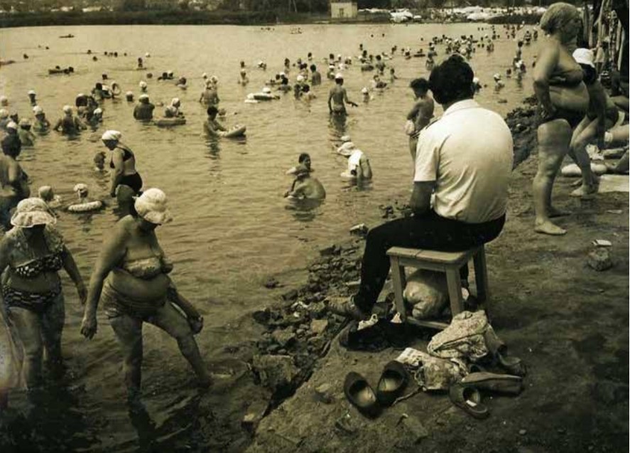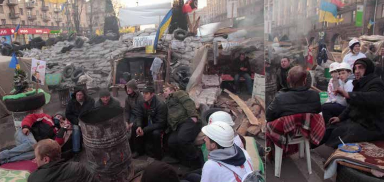 Et puis il y a ce grand mur consacré aux photos des baignades des Ukrainiens dans le lac salé de Sloviansk dans le Donbass, aujourd’hui occupé par l’armée russe. Dans les années 80, les Ukrainiens venaient s’y reposer, nager ; aujourd’hui les usines alentour y déversent leurs déchets mais les baignades ont continué jusqu’à la guerre actuelle. Une guerre dont Mikhaïlov a photographié les prémisses avec la révolte de la place Maïdan à Kiev. Le 21 novembre 2013, le président Viktor Ianoukovitch rejetait l’accord d’association avec l’Union européenne et la population se rassemblait place de l’Indépendance dans le chaos et la violence.