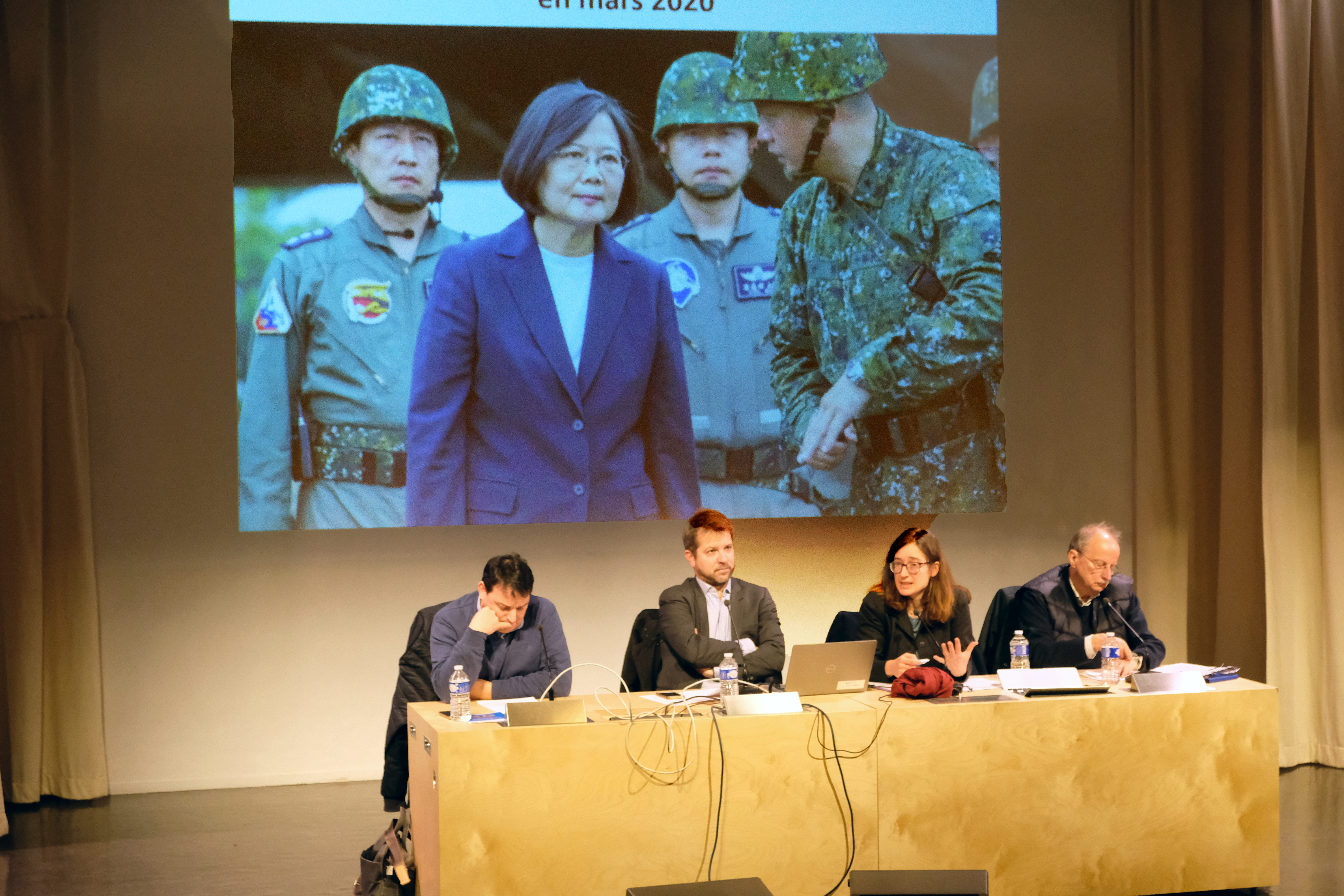 La présidente Tsai Ing-wen, en inspection parmi les forces taiwanaises, image présentée lors de la conférence de l’Inalco.