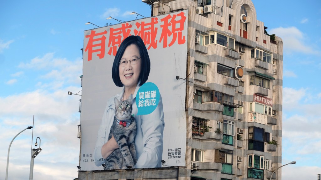 La présidente taiwanaise, Tsai Ing-wen, aime afficher sa passion pour les chats et une certaine force tranquille qui agace le pouvoir chinois. (c) Ph Rochot : 2020.