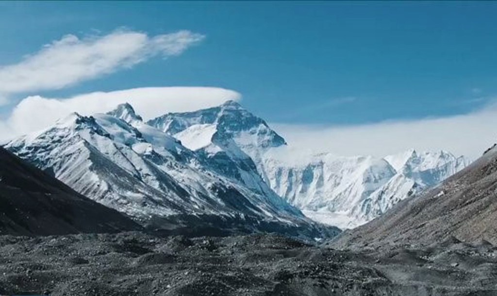 L’Everest, 8848 mètres d’altitude, versant tibétain (chinois !). Qomolangma pour les Chinois. Sagarmata pour les Tibétains…Vu du camp de base. (DR)