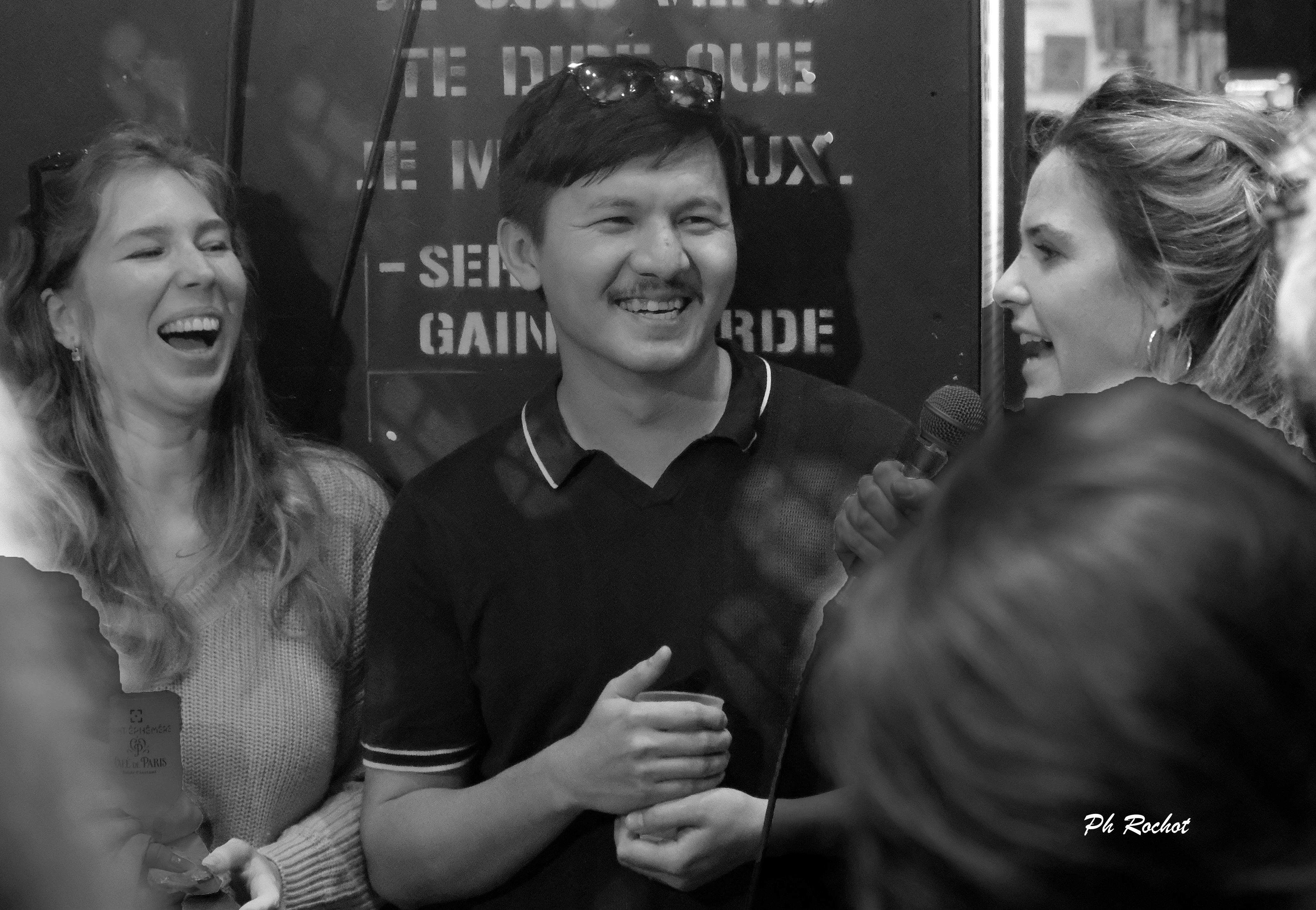 Paris: Mortaza de retour parmi ses confrères. A gauche, son épouse Aleksandra, à droite Solene Chalvon Fioriti, grand reportere, spécialiste de l’Afghanistan. Le 25 oct 2023.