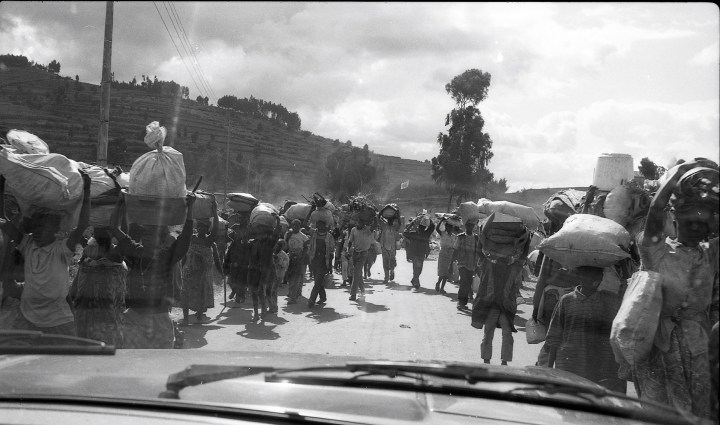 Frontière Congo-Rwanda; le retour des réfugiés hutus qui avaient gagné le Congo voisin grâce à l’opération turquoise. 1996.