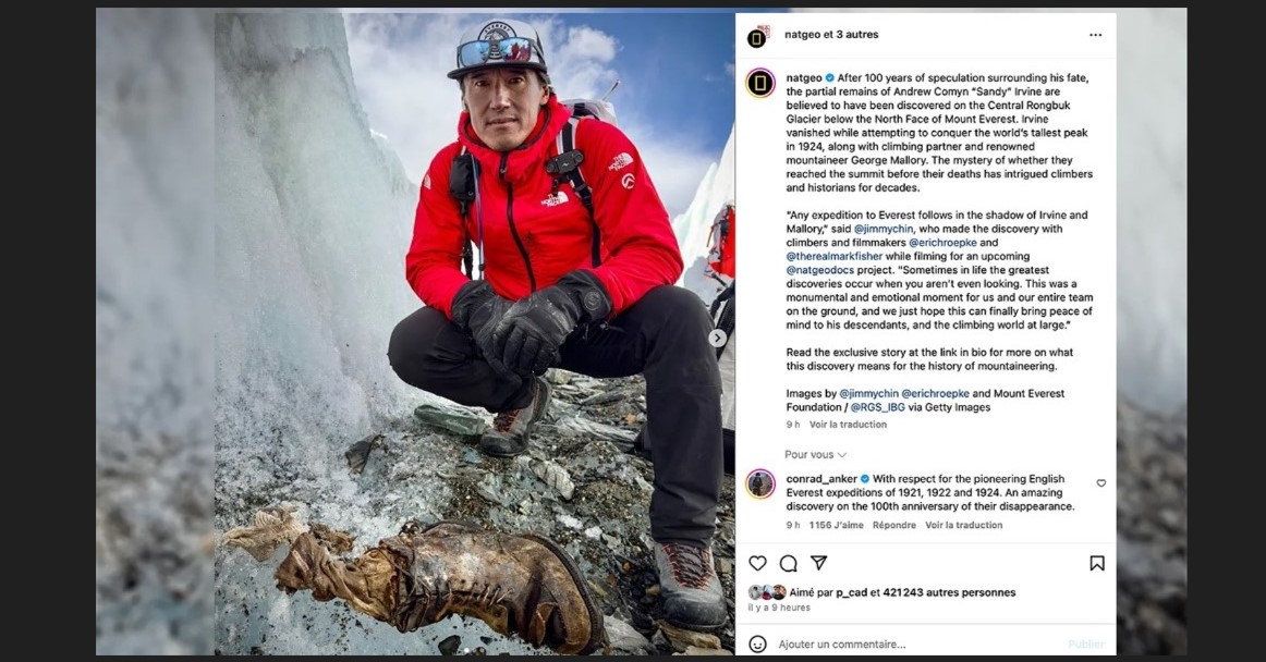 Ces victimes, à moitié figées dans les neiges ou les glaces servent même de repère aux expéditions. Jusque là personne n’est passé à côté du corps ou du sac à dos de Sandy Irvine mais la découverte de son pied pourrait peut-être nous y conduire.